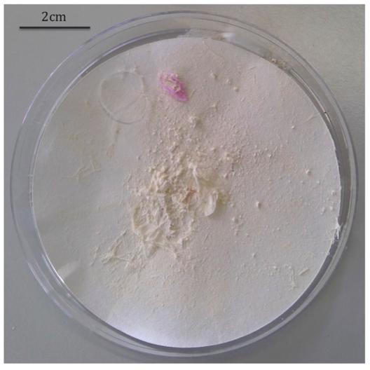 Red-tailed tropic-booby sample with straw and fishing line. Photo credit: Isabel Connell